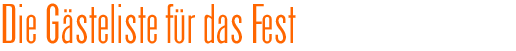 Eine Hochzeit zu planen ist eine große organisatorische Leistung. Um Sie dabei zu entlasten, haben wir für Sie eine Liste zusammen gestellt, auf der Sie die Gäste notieren können. Personen-Liste: